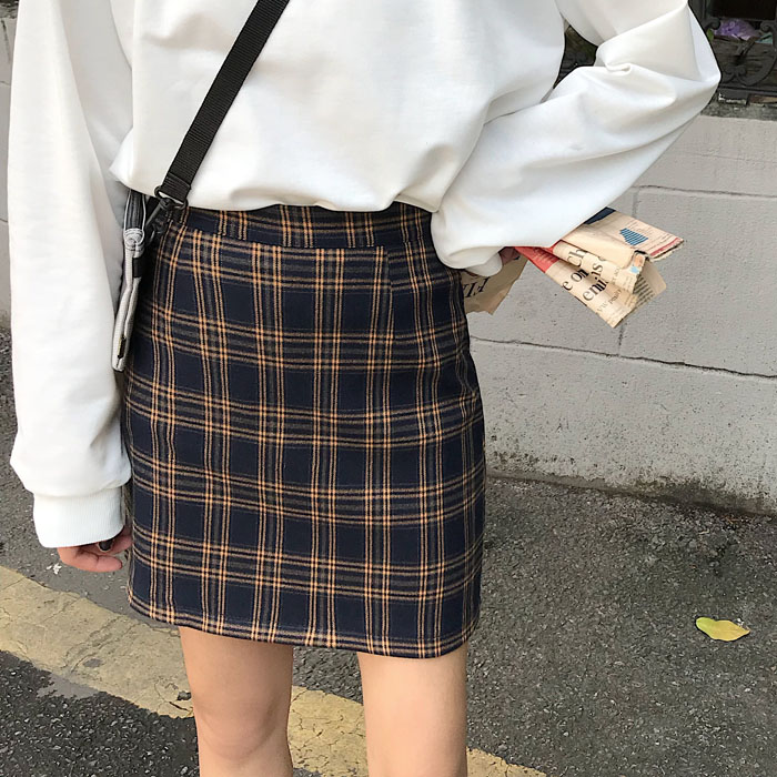秋季女裝韓版寬松格子半身裙高腰百搭顯瘦短款裙子學生A字裙短裙