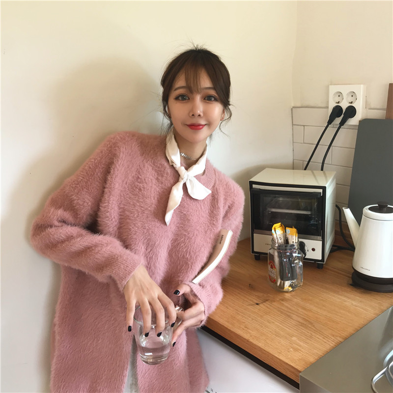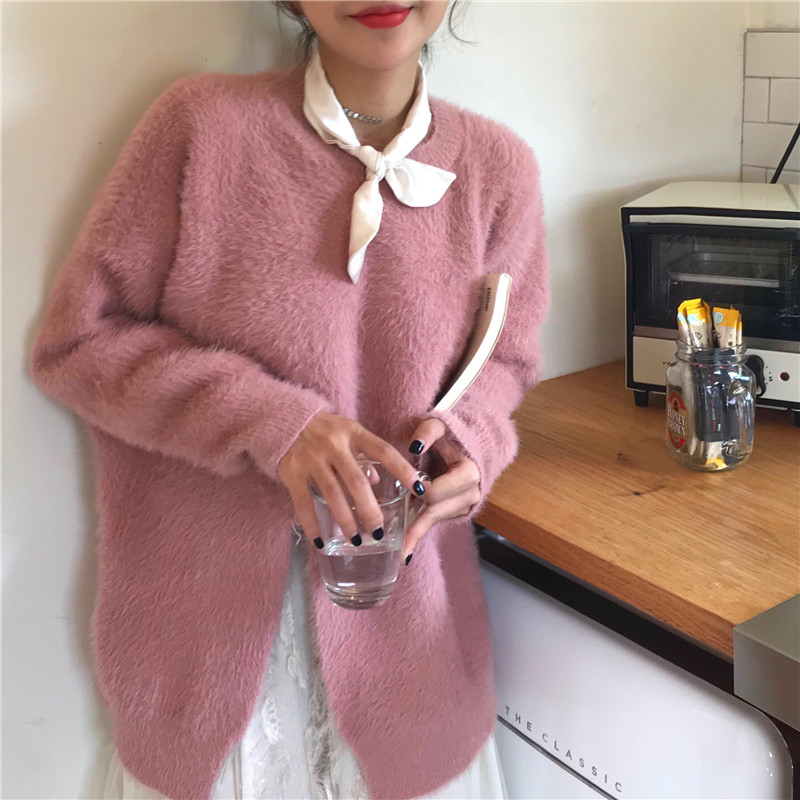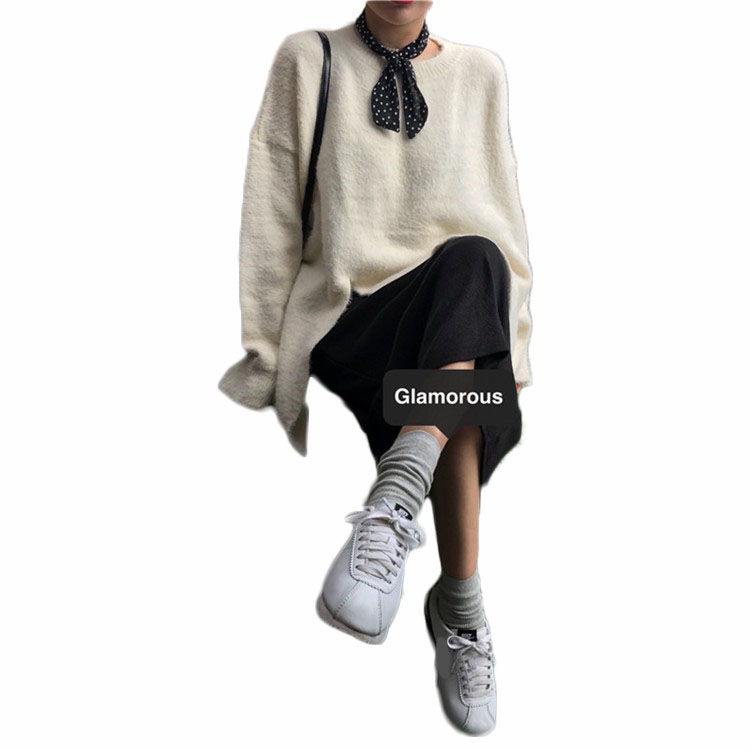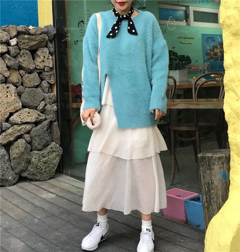 / 時尚慵懶風套頭毛衣女2018新款秋冬韓版氣質百搭開叉寬松針織上衣