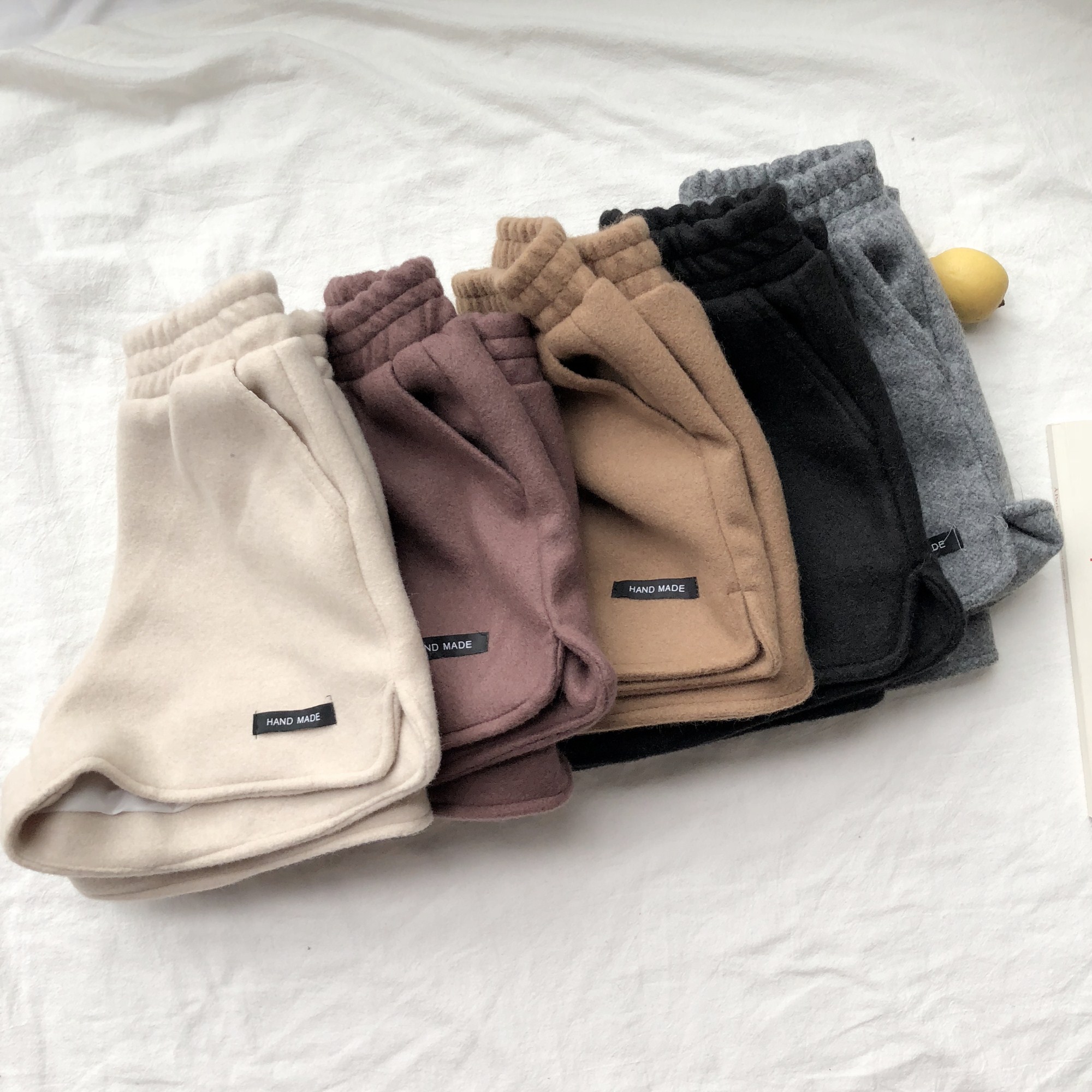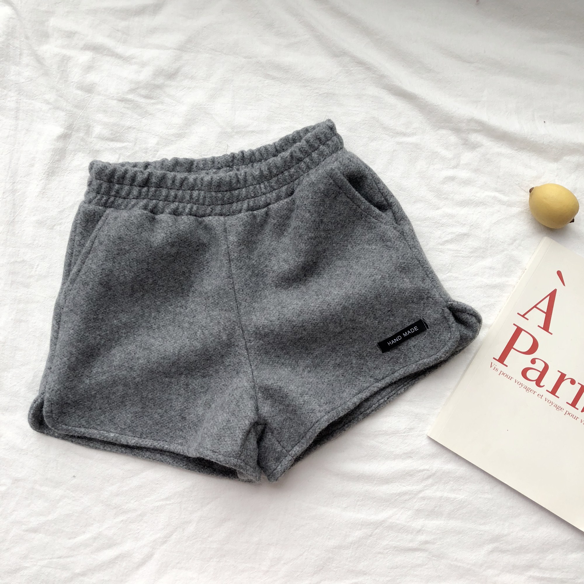 / 褲子女新款韓版百搭加厚毛呢寬松短褲松緊腰褲高腰直筒褲闊腿褲潮