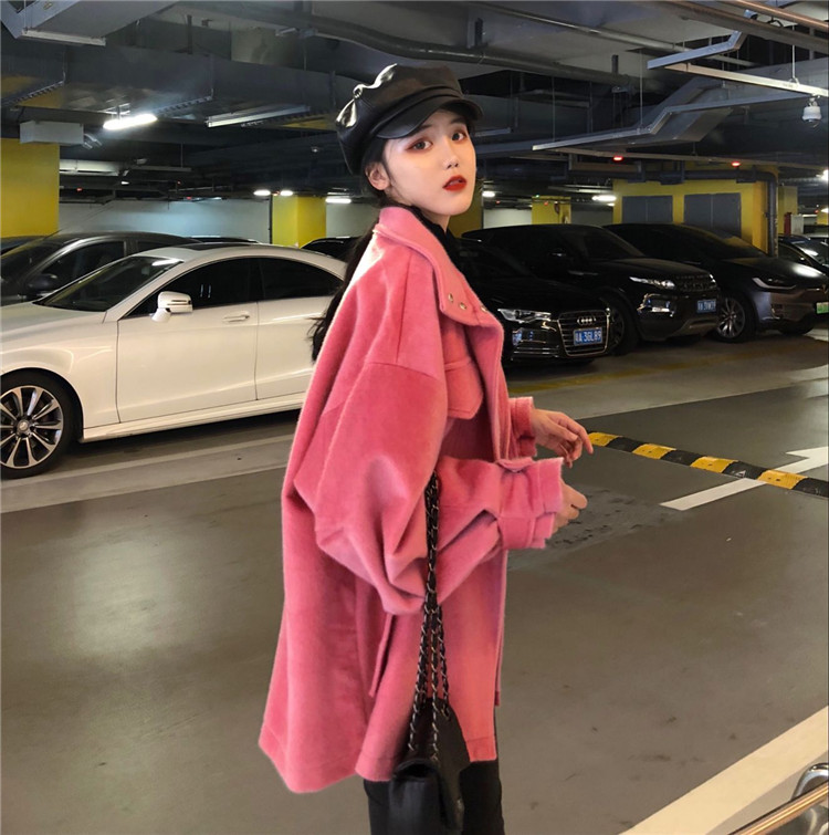 / 外套女春秋2018新款韓版百搭海馬毛純色系帶收腰立領寬松保暖外套