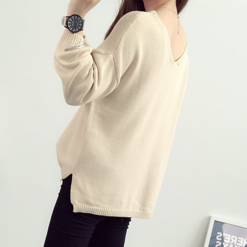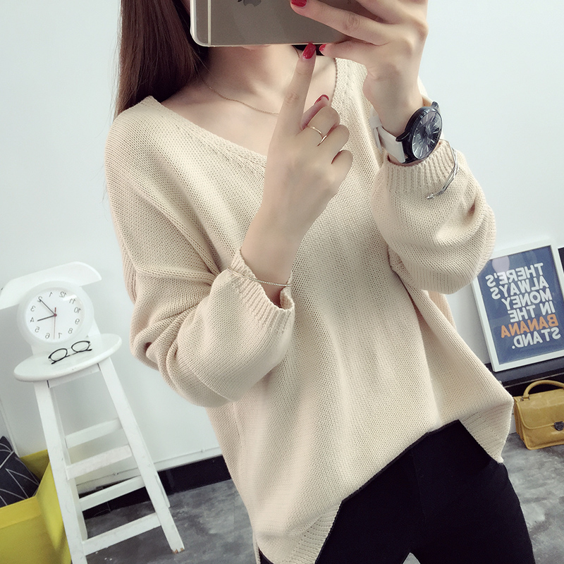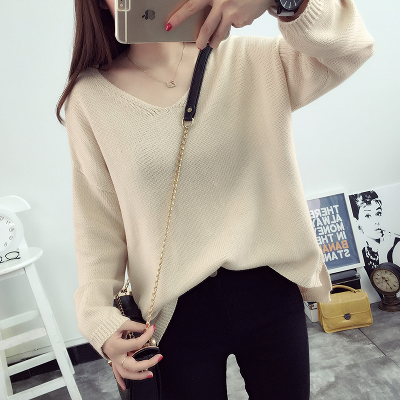 毛衣春秋新款套頭女寬松針織打底衫v領長袖薄款毛衣春裝百搭