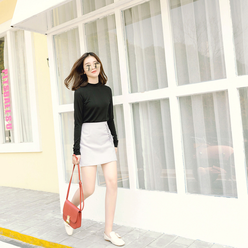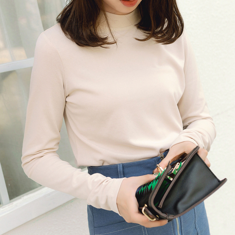/ 春秋季女裝新款長袖純色半高領T恤套頭短款韓版修身打底衫潮