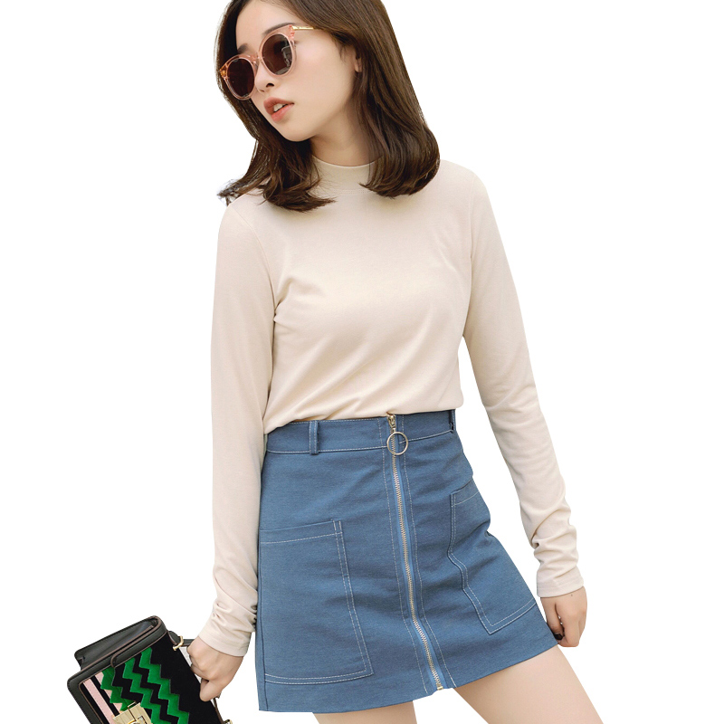 春秋季女裝新款長袖純色半高領T恤套頭短款韓版修身打底衫潮