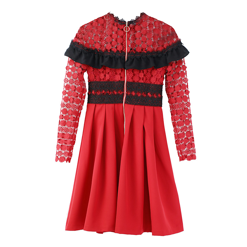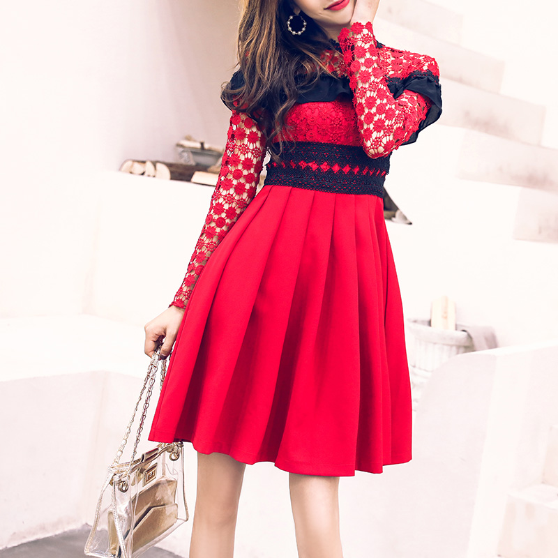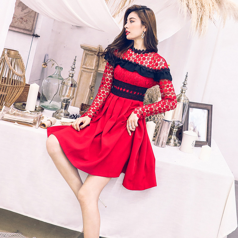/ 歐洲站2018新款裙子修身仙女鏤空性感蕾絲蓬蓬中長款公主連衣裙潮