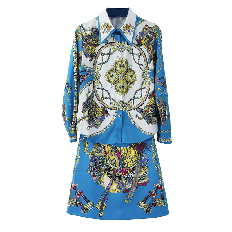 / 名媛氣質2018秋冬新款時尚印花兩件套高腰A字包臀半身裙套裝潮