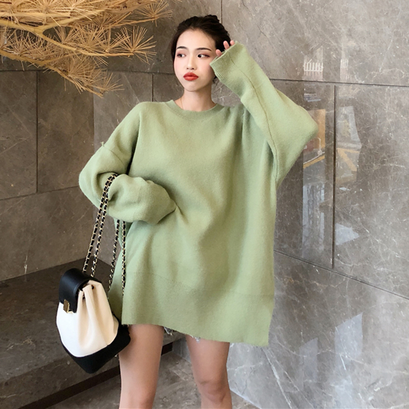 / 寬松慵懶風套頭網紅ins毛衣女秋冬2018新款韓版外穿中長款針織衫