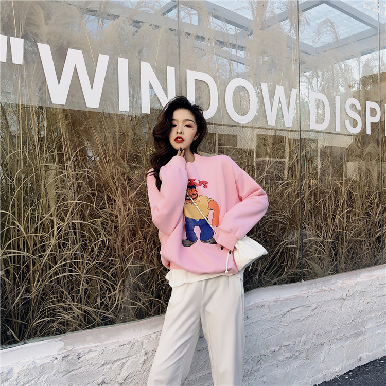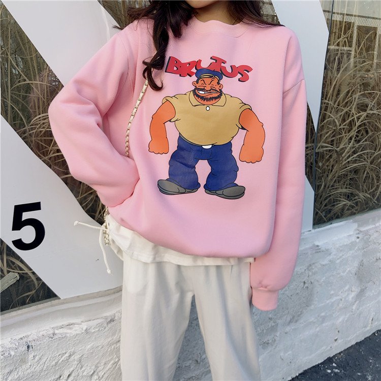 港風加絨ins同款大力水手卡通印花圓領衛衣