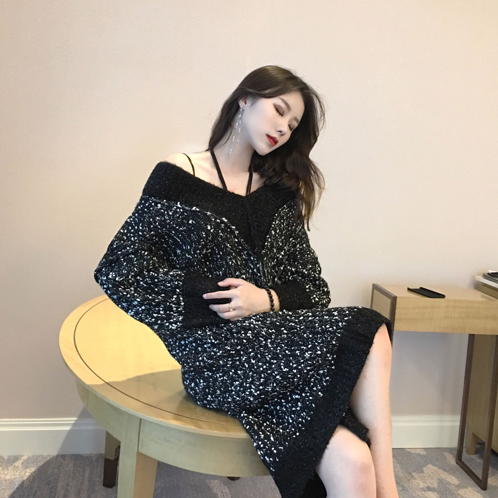/ 港味復古慵懶風套頭毛衣女2018新款秋加厚長款針織毛衣裙連衣裙女