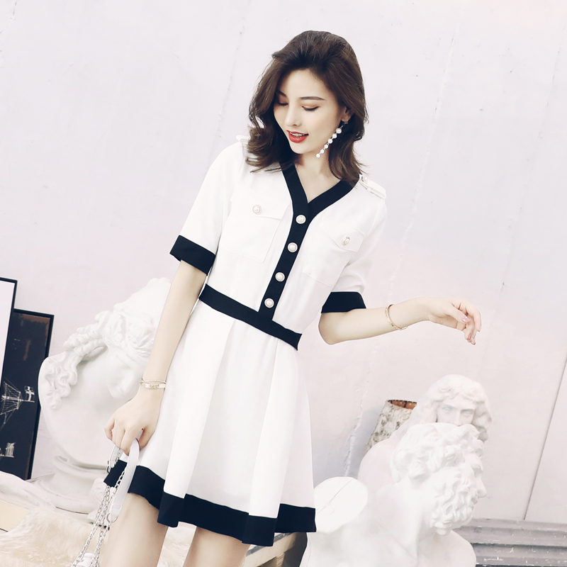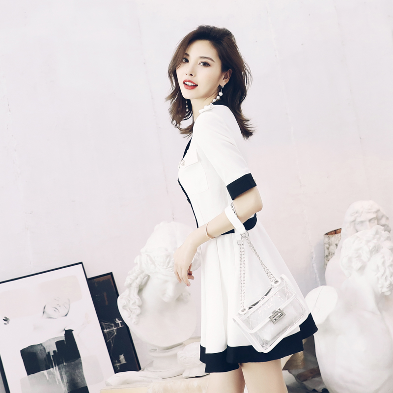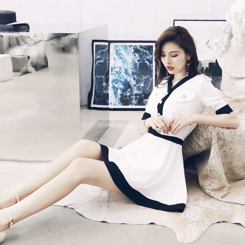 / 學院風名媛裙子女裝夏季2018新款小個子短裙短袖a字裙公主連衣裙