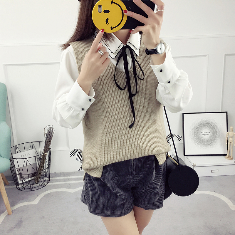 春裝毛衣馬甲女韓版V領短款寬松顯瘦套頭毛線衣百搭春秋針織背心