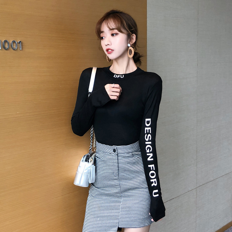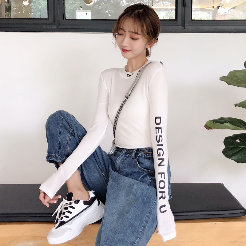 新款韓版秋裝chic修身顯瘦百搭上衣網紅同款字母T恤長袖打底衫潮