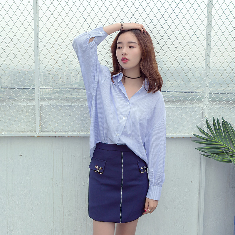 翻領的設計,上身的時候解開上面一兩顆的扣子,露出鎖骨更加顯瘦哦~