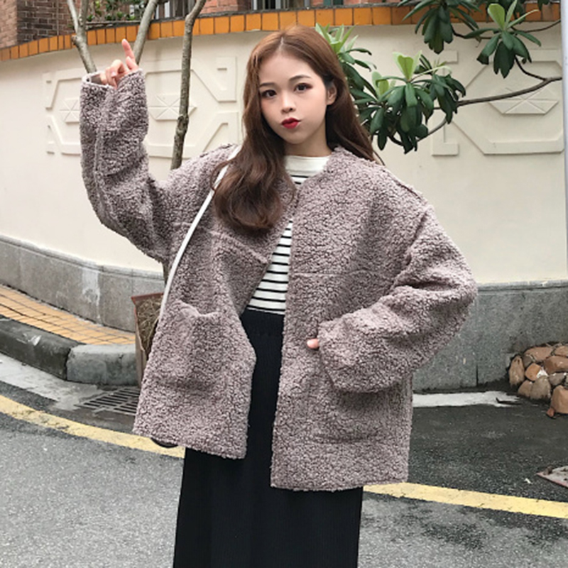 秋冬裝女2018新款兩面穿麂皮絨皮毛外套學生韓版寬松休閑長袖開衫