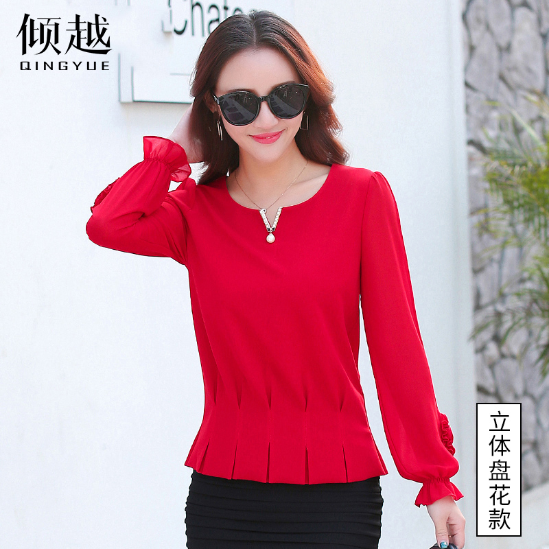 / 2017春裝新款蕾絲拼接鏤空上衣女衫百搭長袖雪紡衫女修身打底小衫