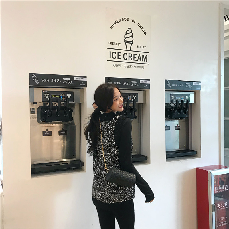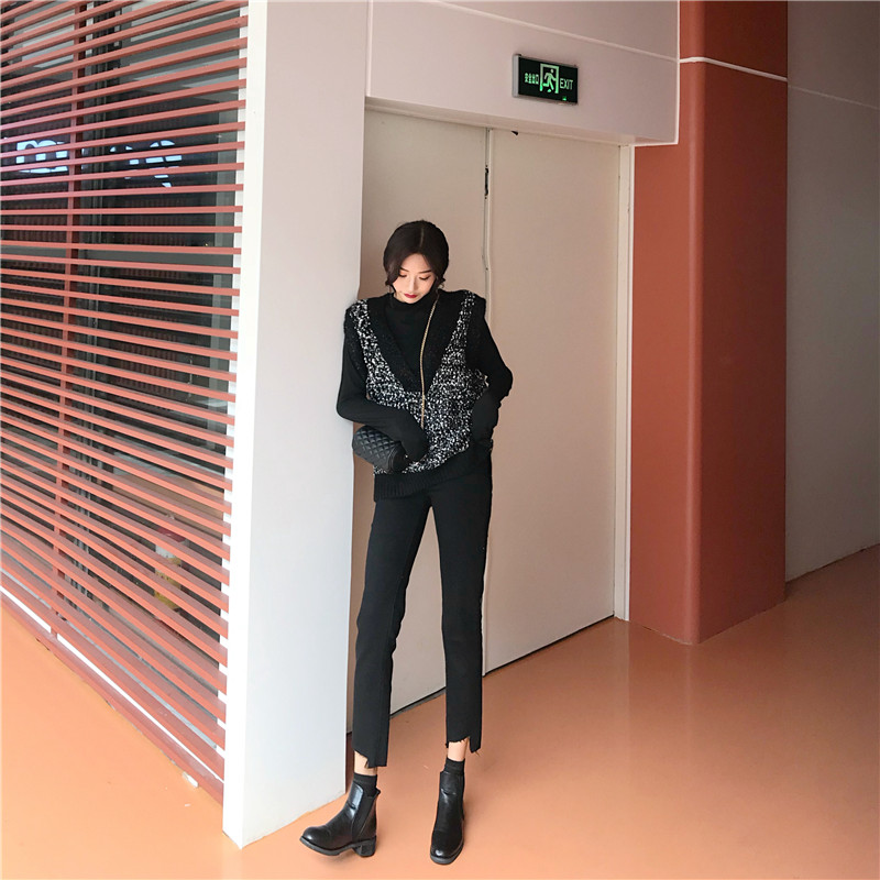 / 慵懶寬松閃閃拼接馬甲時尚套裝高腰顯瘦不規則微喇叭牛仔褲兩件套