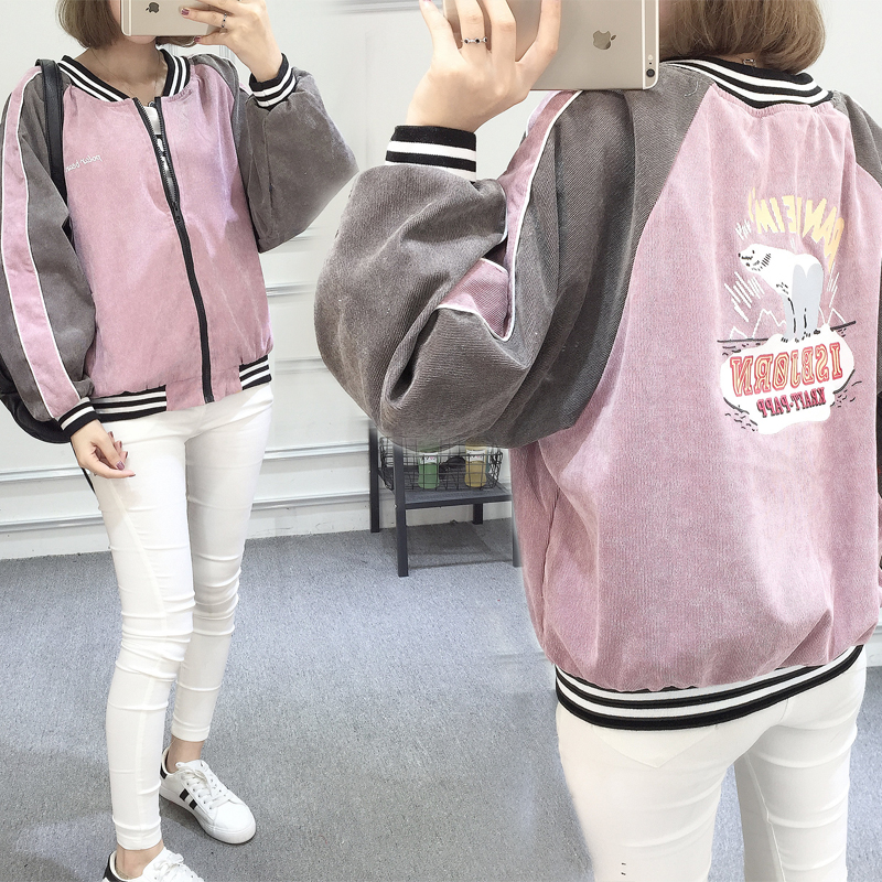 / 韓國ulzzang棒球服女 春秋厚款復古學生韓版bf原宿風燈芯絨外套女