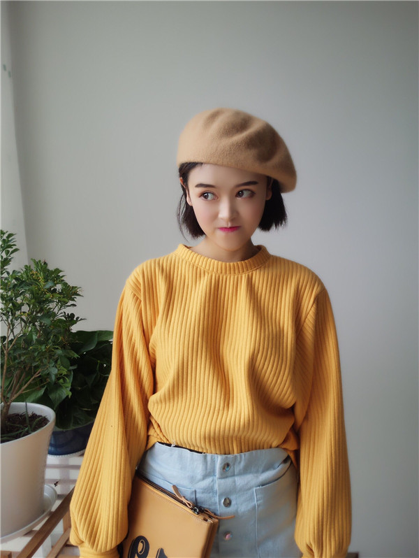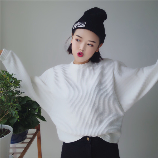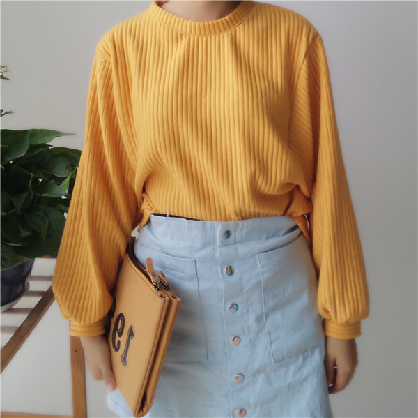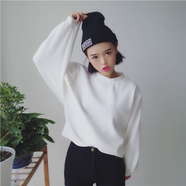 / 秋季韓版新款學院風純色百搭寬松顯瘦圓領套頭長袖衛衣螺紋上衣女
