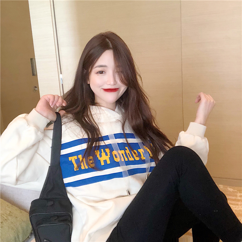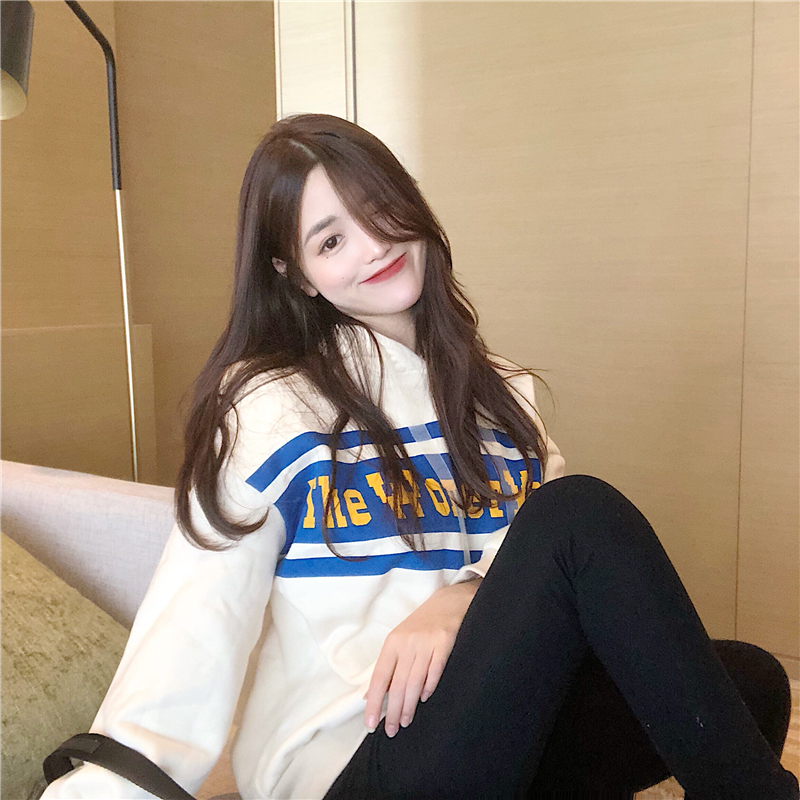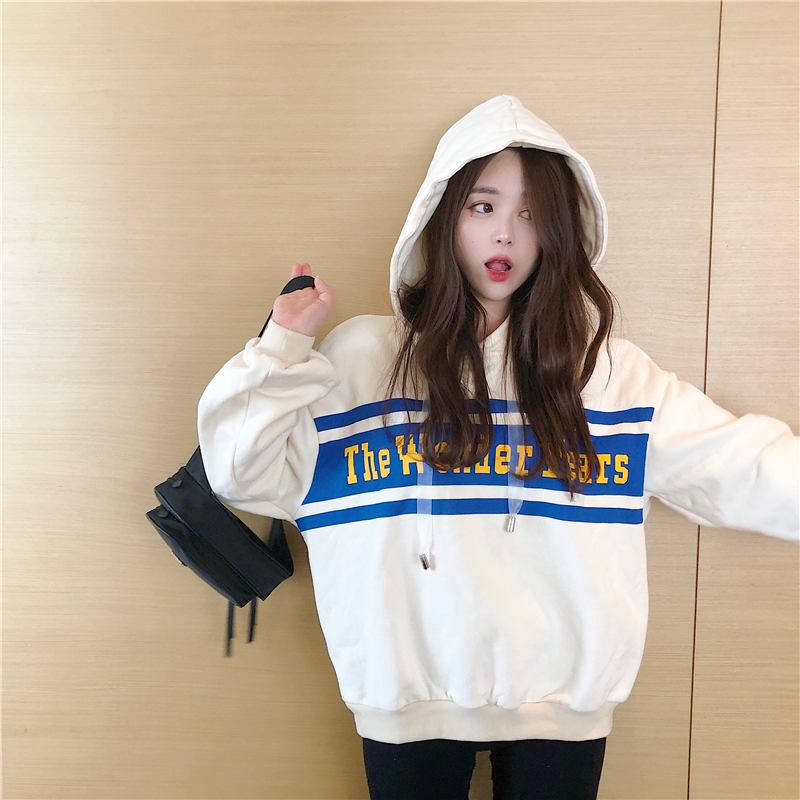 / 衛衣女2018秋冬新款寬松休閑字母印花加絨長袖連帽套頭上衣外套潮