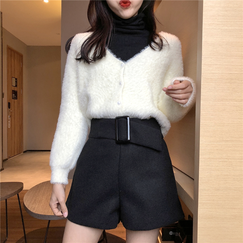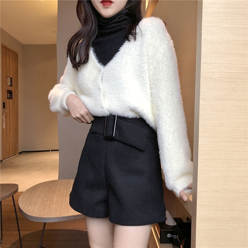 毛呢短褲女秋冬2018新款韓版百搭a字外穿高腰顯瘦褲加厚闊腿靴褲