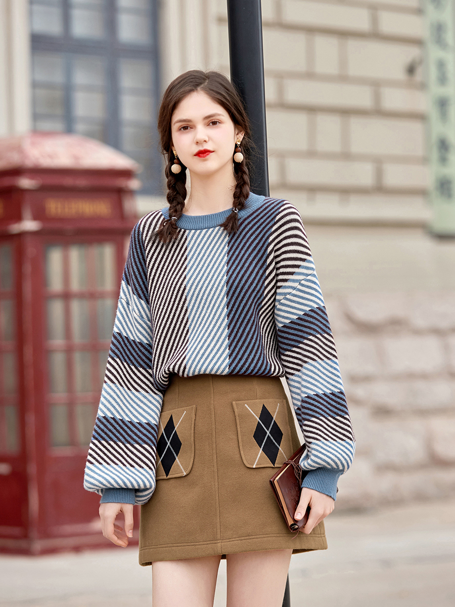 MG小象港味復古半身裙女冬季新款高腰顯瘦chic短裙學生a字裙子潮