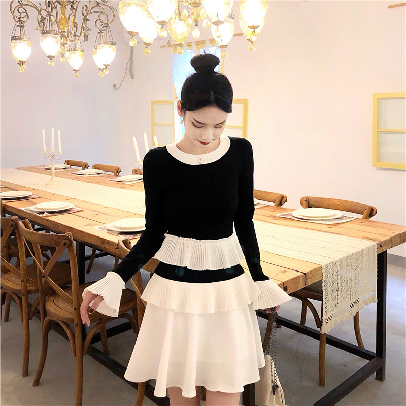 / 公主風韓國復古新款秋冬連衣裙女修身顯瘦氣質收腰蛋糕裙閨蜜裝潮