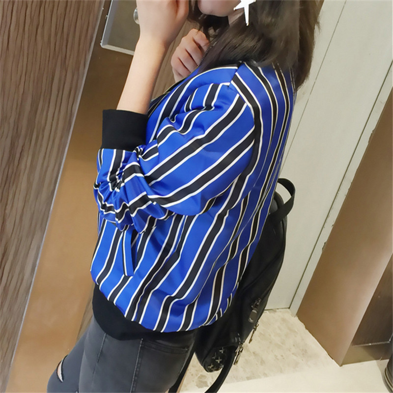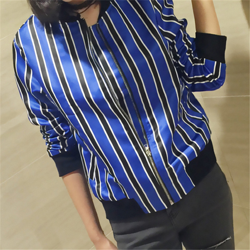韓國chic秋冬款休閑條紋撞色氣質情侶裝長袖拉鏈棒球服外套女