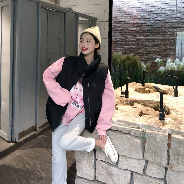 / 女神套裝秋冬新款加厚馬夾棉衣馬甲女+寬松百搭加絨衛衣+休閑褲潮