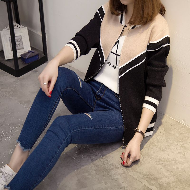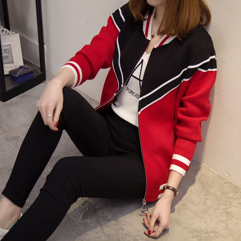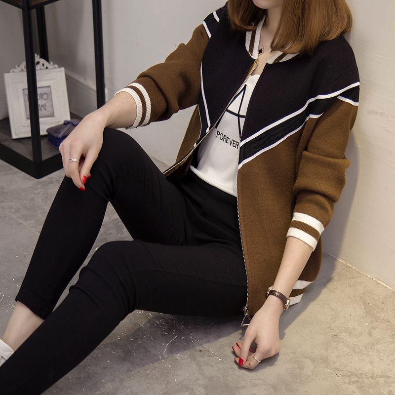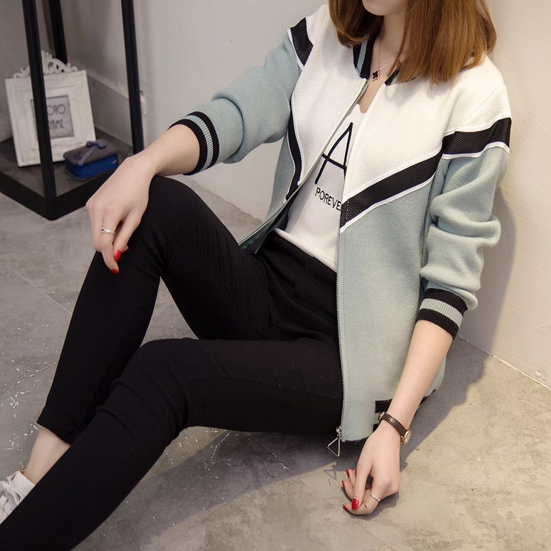 / 女裝韓版寬松針織衫開衫春裝毛衣短外套女長袖棒球服新款潮