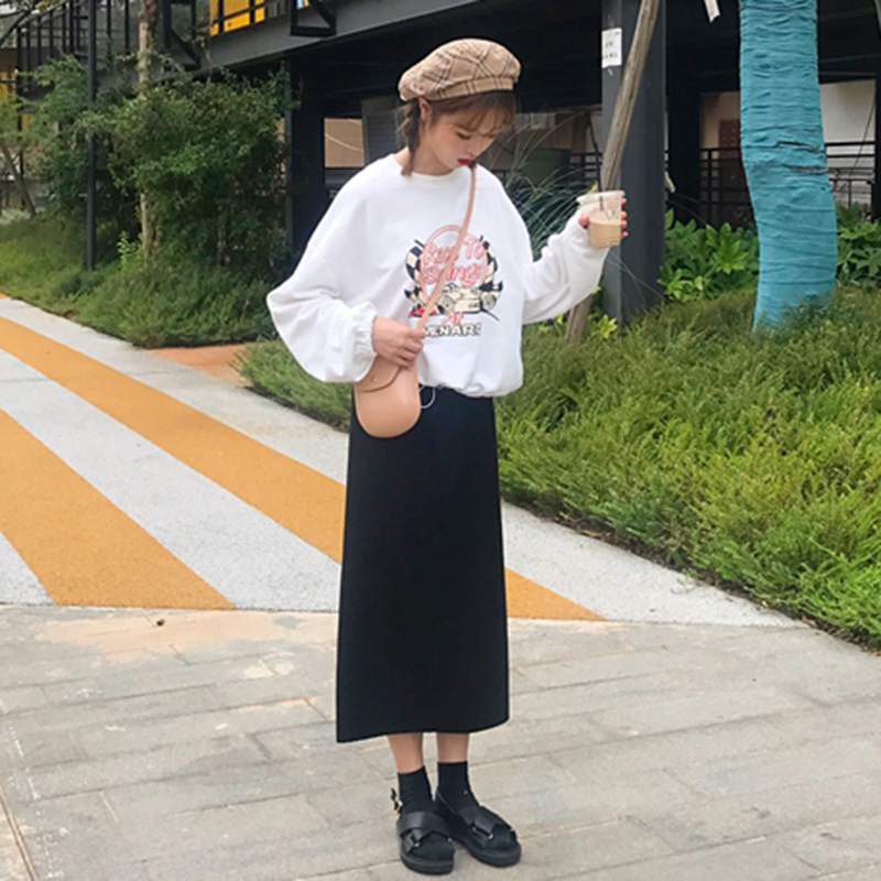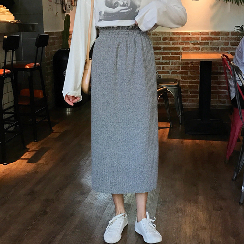 / 后開叉針織a字半身裙女秋裝新款氣質修身顯瘦花苞高腰一步包臀裙