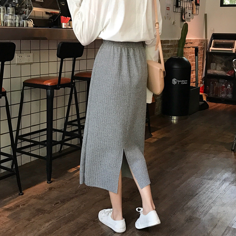 后開叉針織a字半身裙女秋裝新款氣質修身顯瘦花苞高腰一步包臀裙