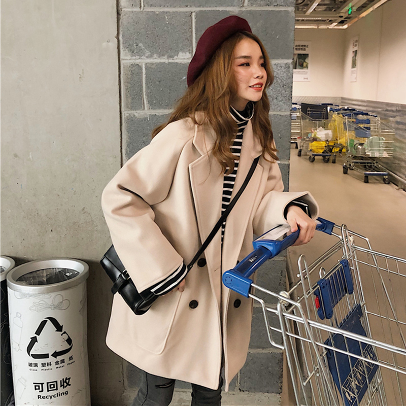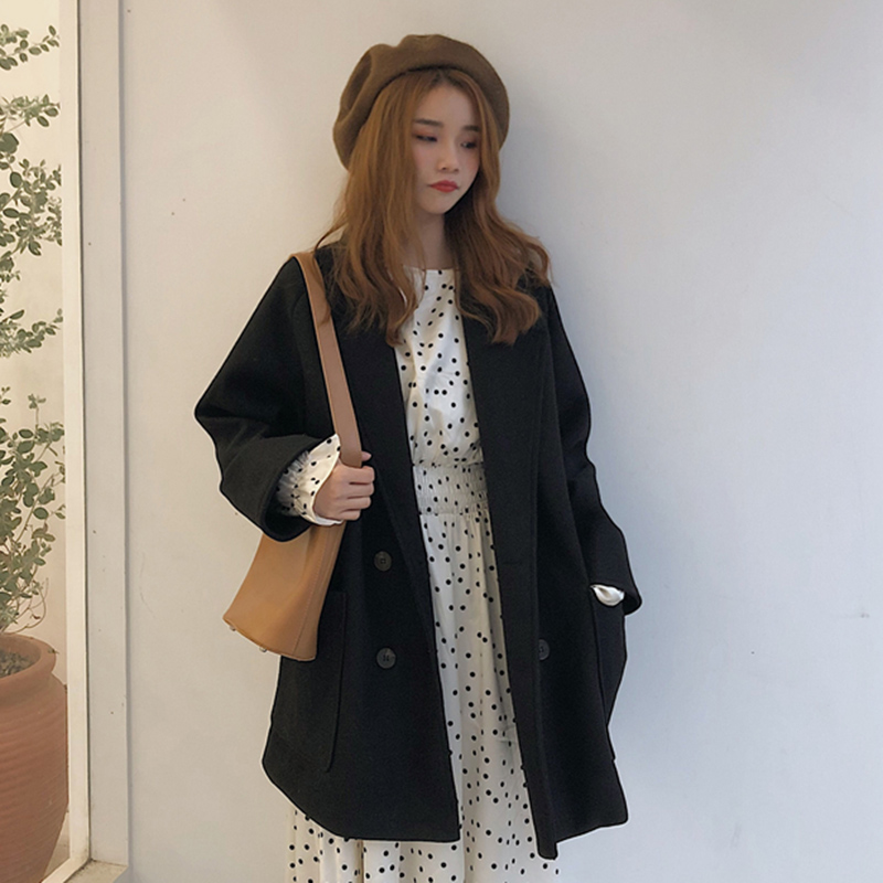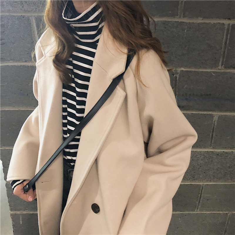 / 風衣女中長款毛呢外套秋冬裝新款純色流行呢大衣學生寬松長袖上衣