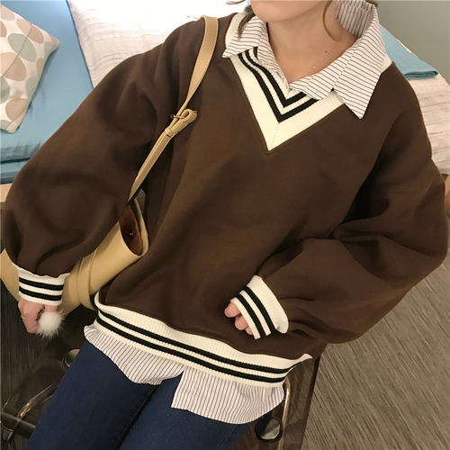 2018新款秋冬韓版學院風V領寬松加絨加厚套頭超火衛衣上衣外套女