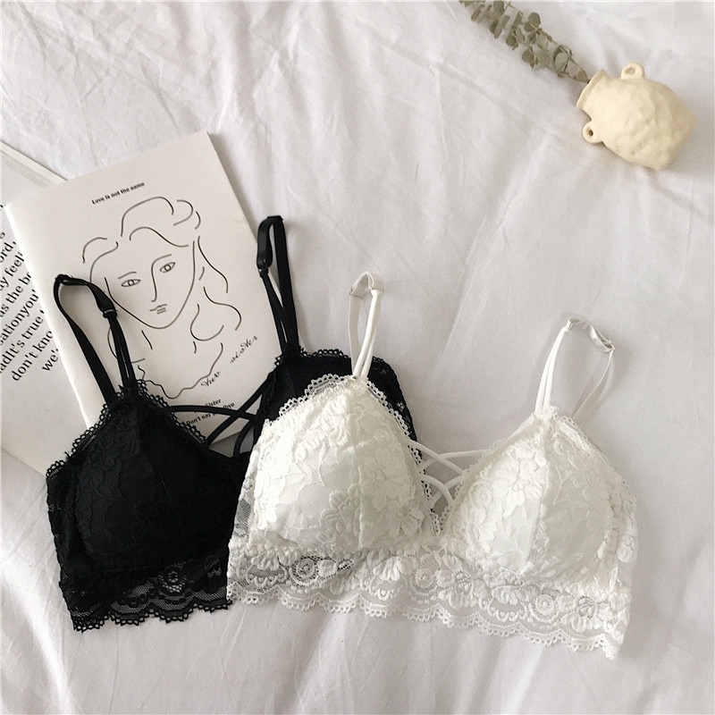 / 春夏韓版無鋼圈蕾絲文胸聚攏美背裹胸內衣短款吊帶打底衫抹胸女士
