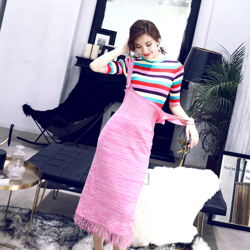 / S秀時尚背帶裙條紋兩件套裝裙2018夏季新款女裝吊帶連衣裙小清新
