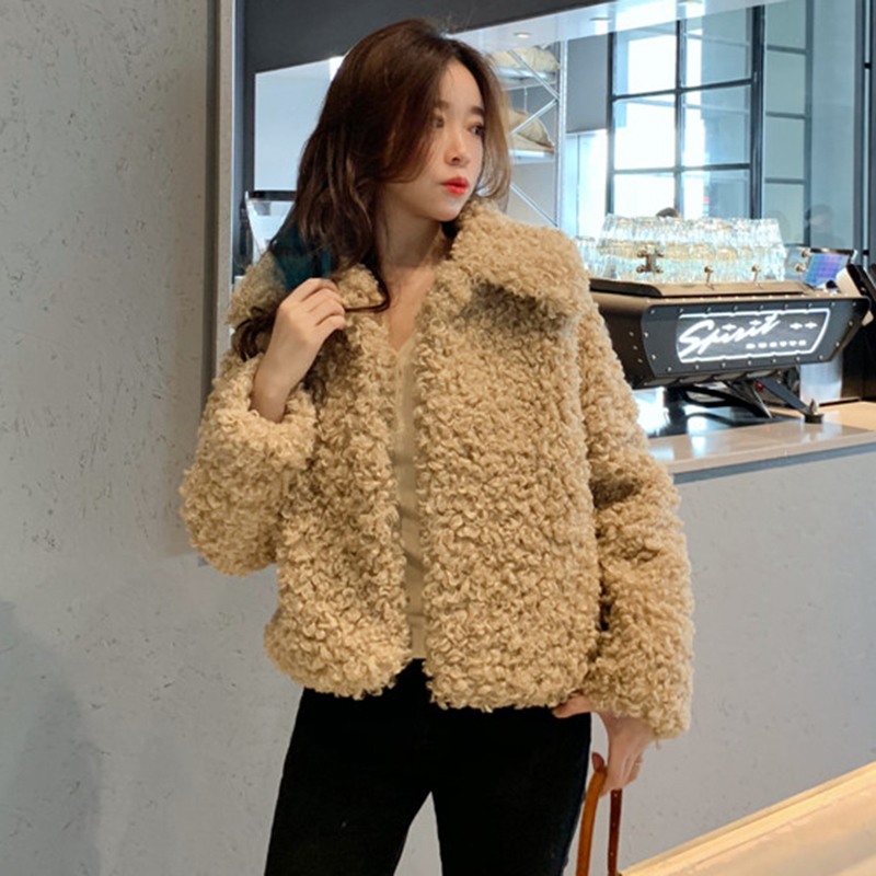 簡約純色羊羔毛外套秋冬女裝2018新款港風翻領長袖開衫休閑上衣潮