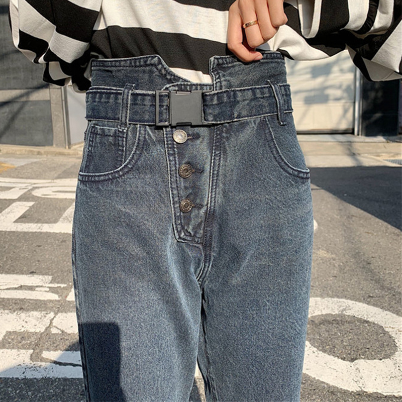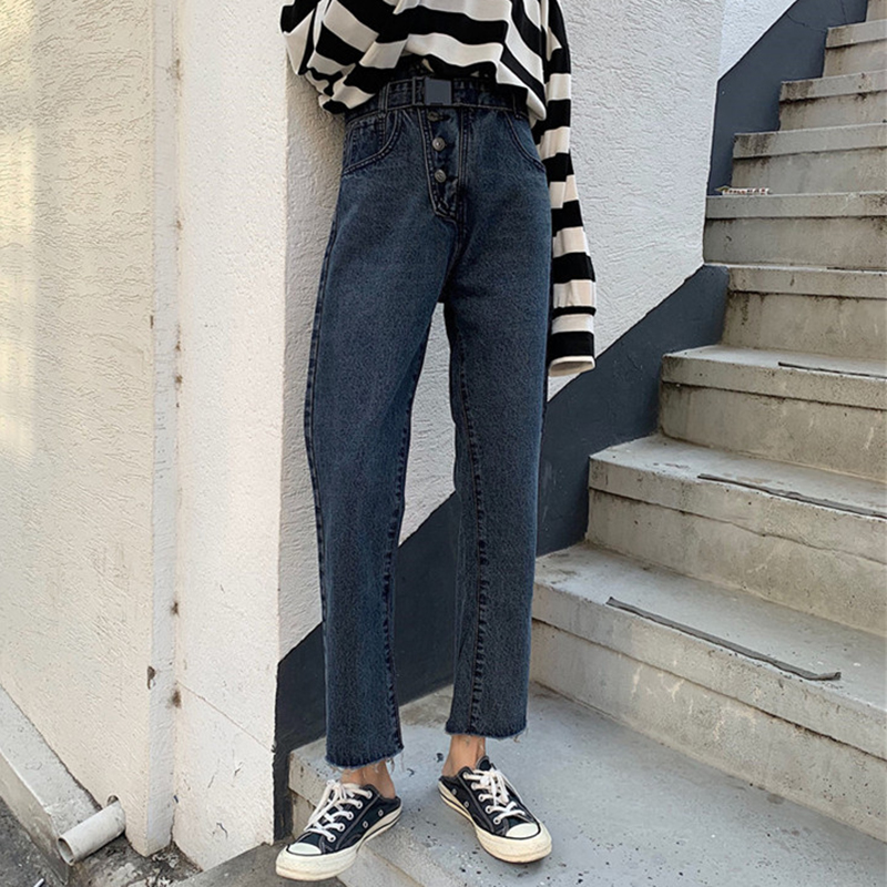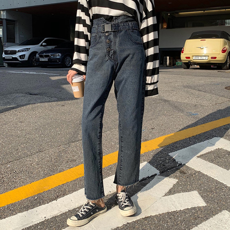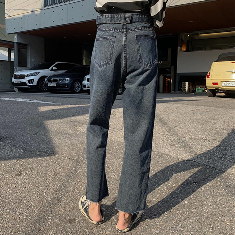 怪味少女須邊牛仔褲秋冬裝2018新款韓版高腰寬松顯瘦直筒褲長褲子
