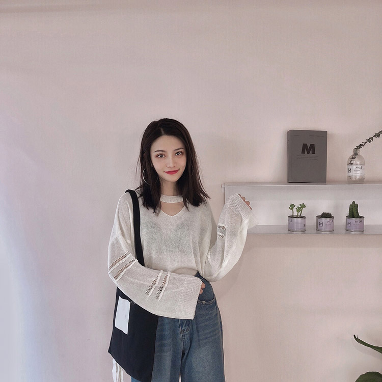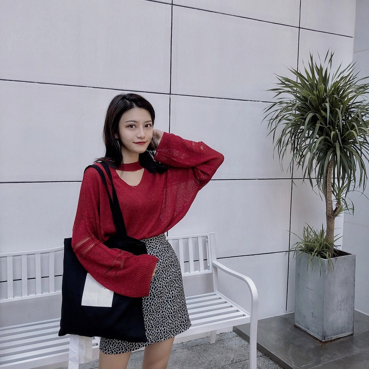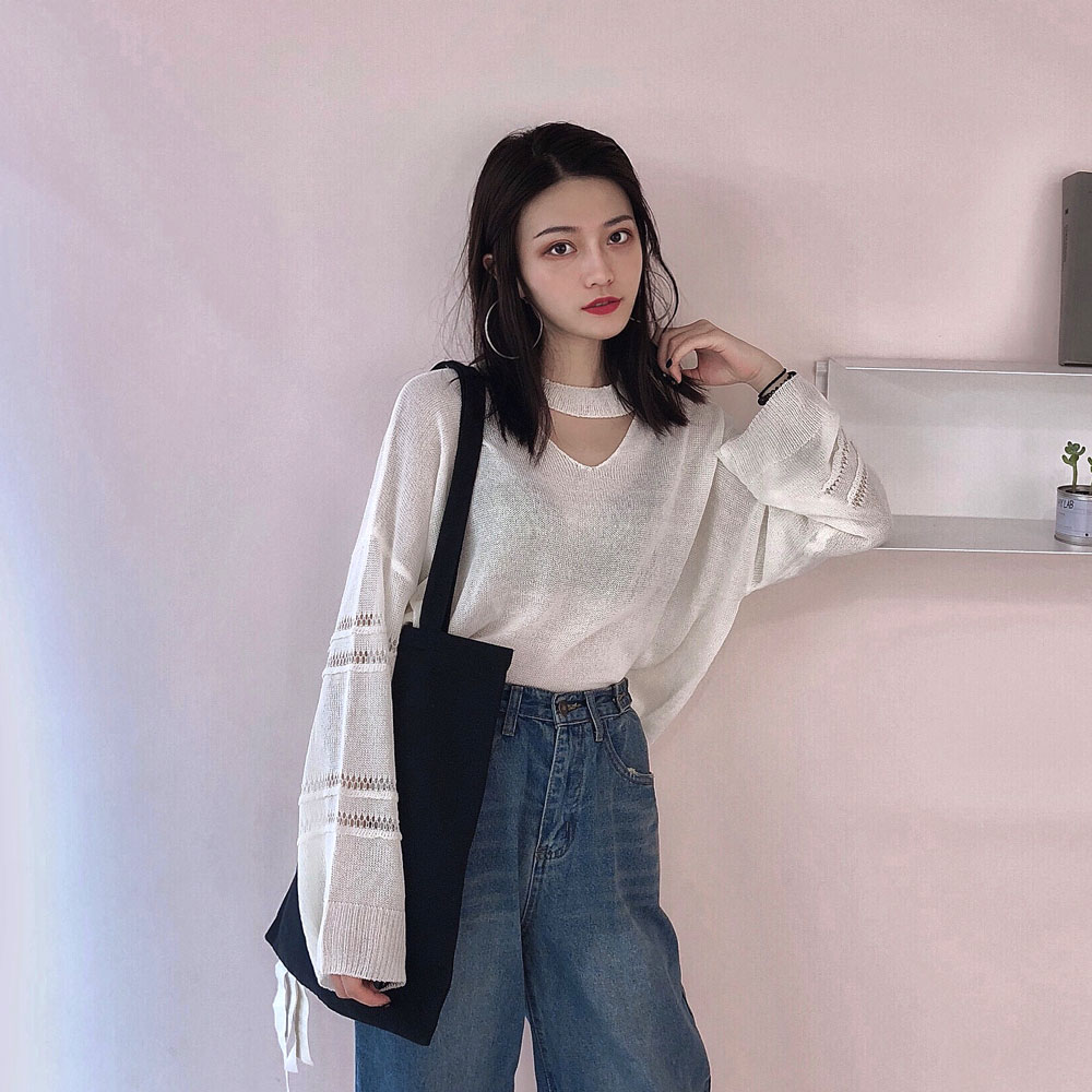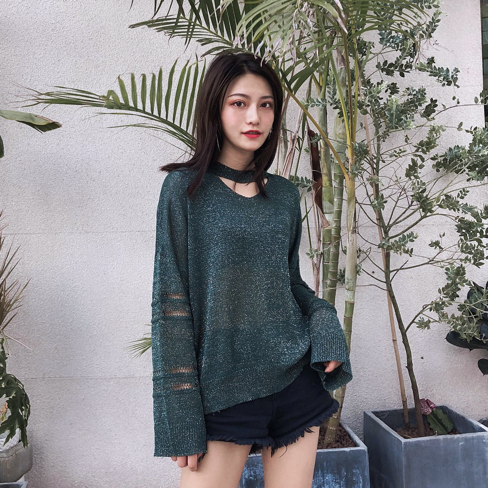 / 秋季新款韓版百搭寬松顯瘦chic閃光冰絲復古針織衫上衣薄毛衣潮女