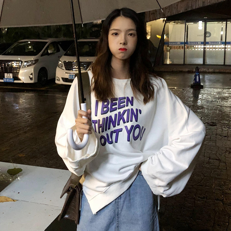 / 時尚秋裝女2018新款韓版學生寬松開叉印花衛衣喇叭長袖圓領上衣潮