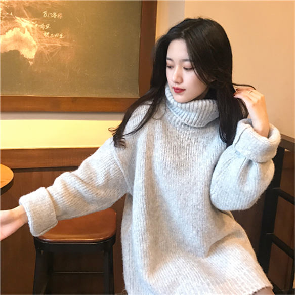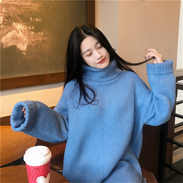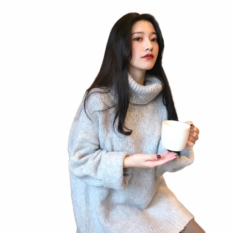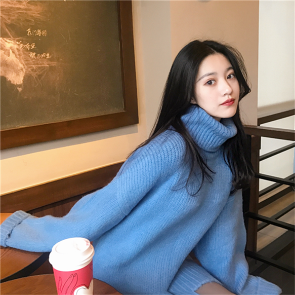 韓系早秋時尚網紅毛衣女2018新款寬松慵懶風加厚高領顯瘦遮臀毛衣