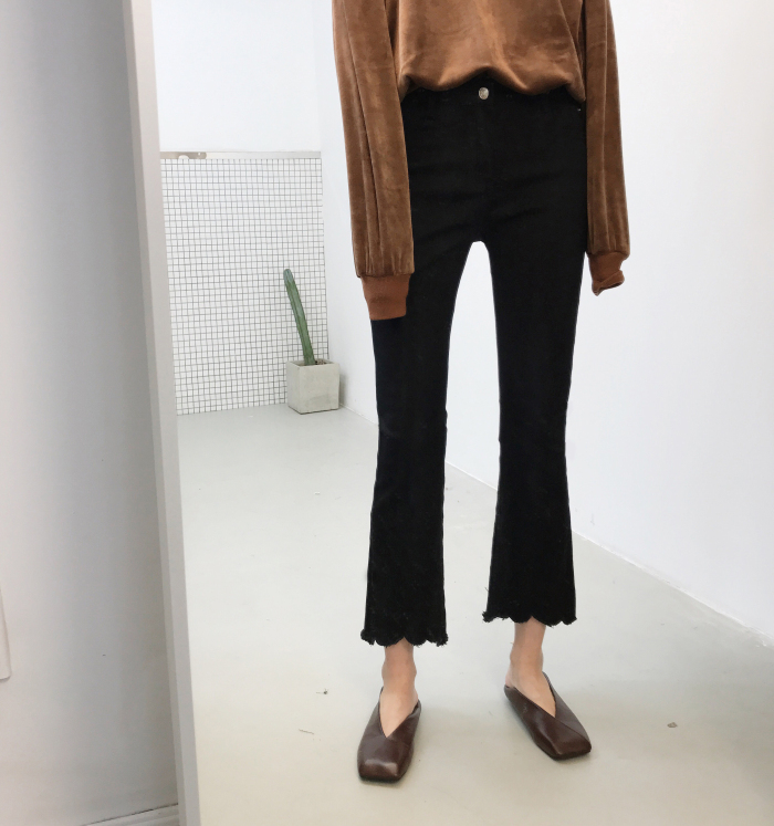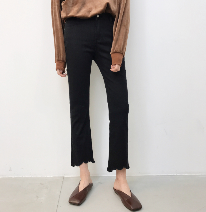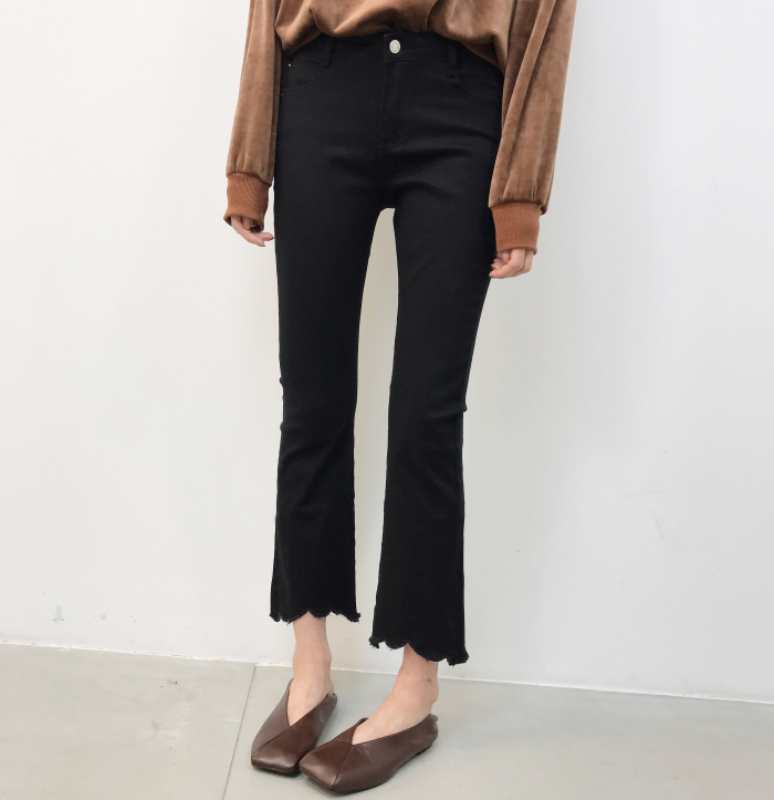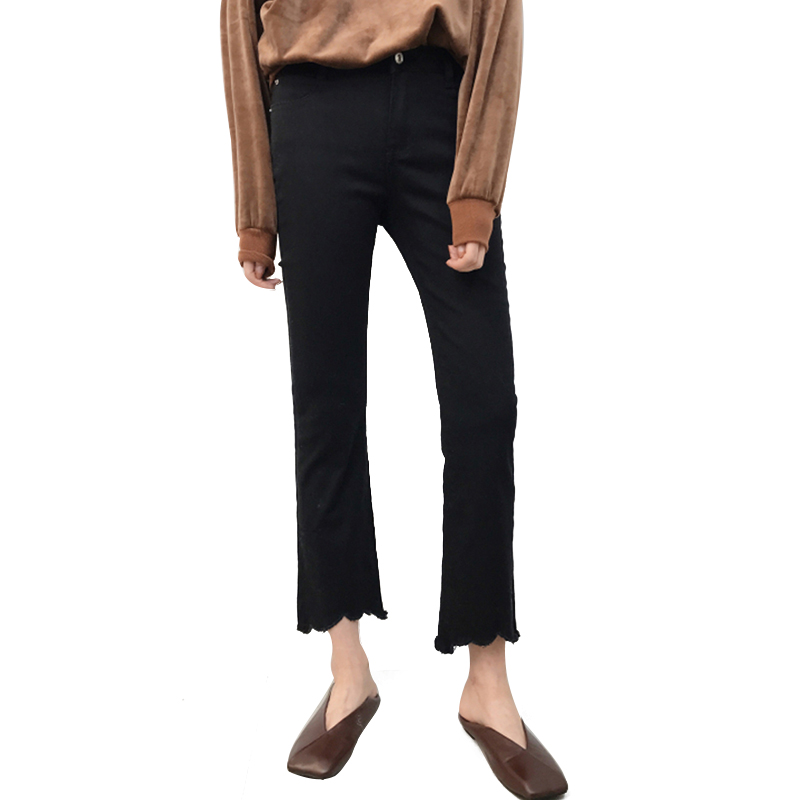 秋裝女裝韓版高腰褲腳不規則缺口微喇叭褲顯瘦百搭九分褲牛仔褲潮