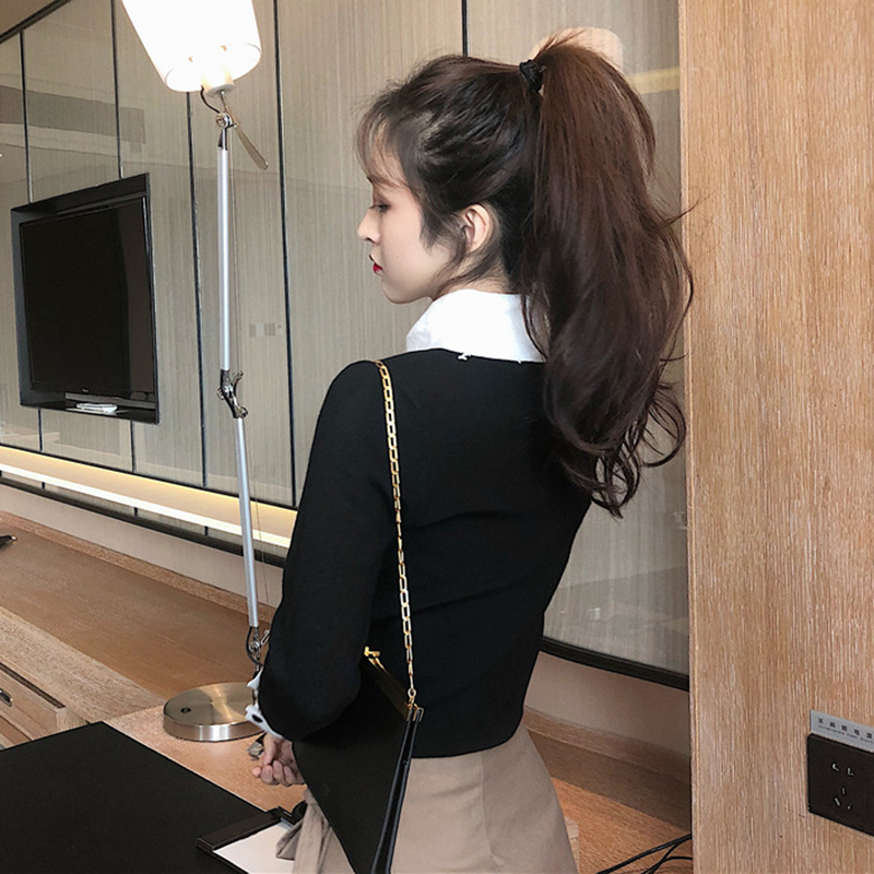 / 秋冬女裝2018新款氣質修身拼色翻領外穿打底薄毛衣百搭套頭針織衫