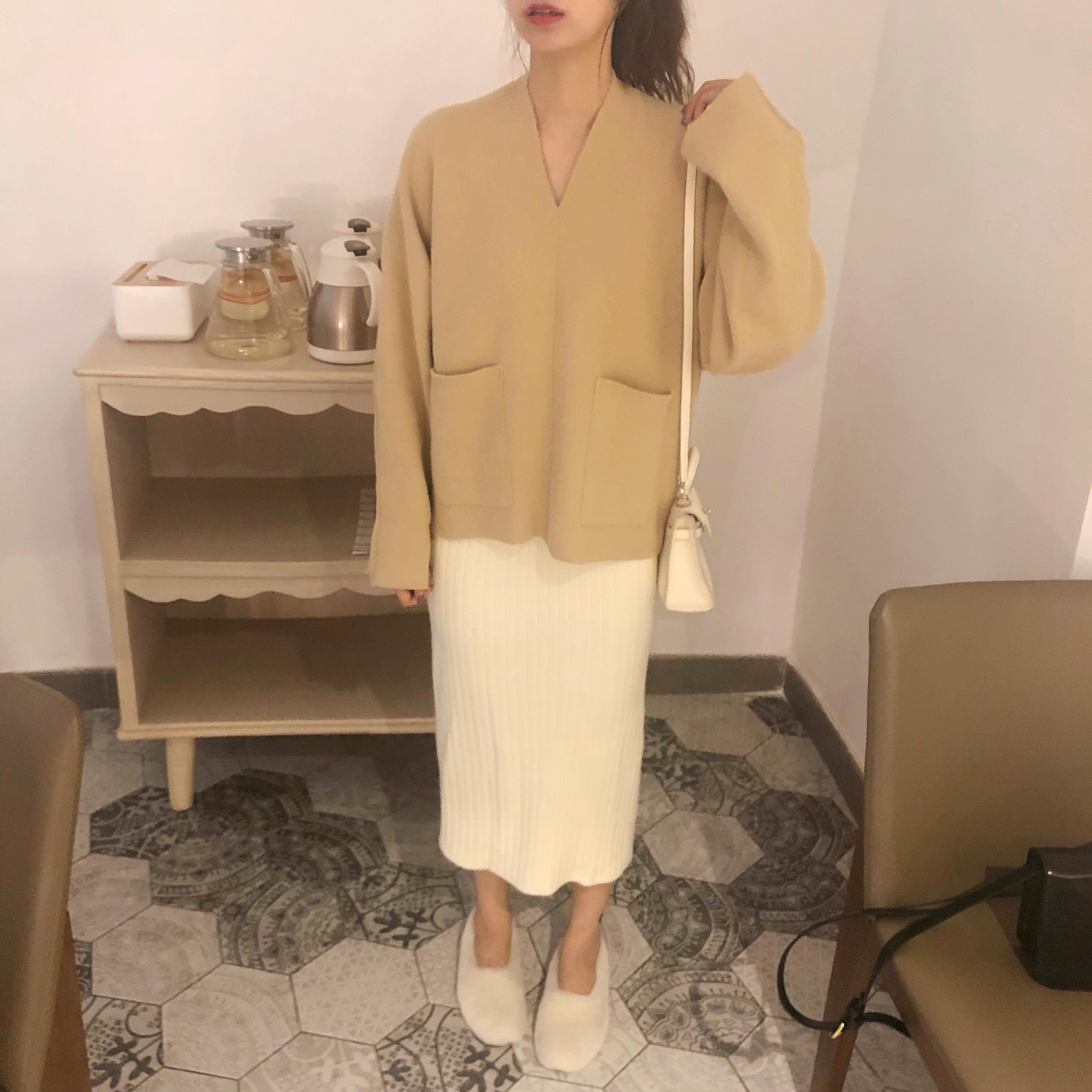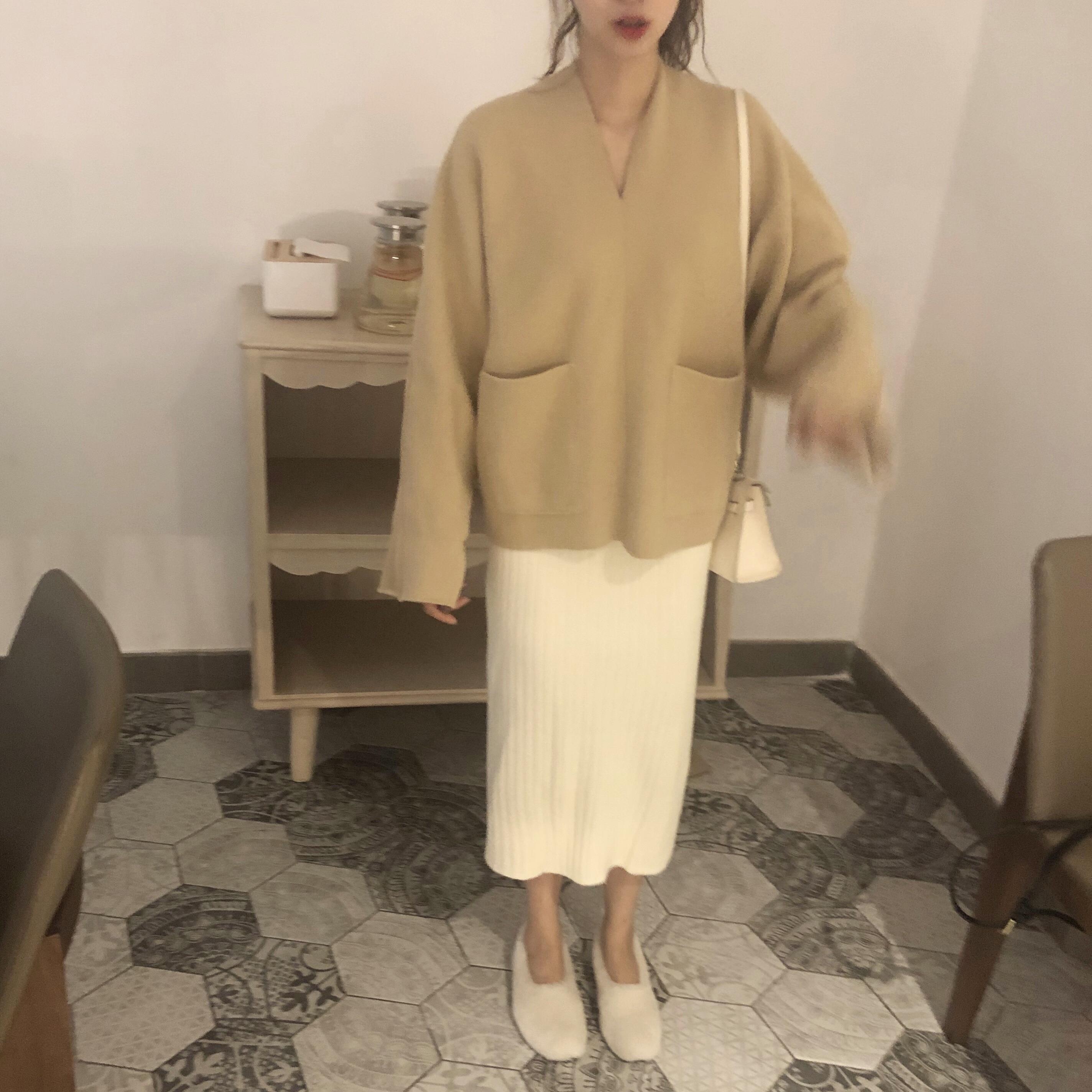 / 韓版時尚休閑套裝秋季仿鹿皮絨衛衣外套+開叉半身裙長裙兩件套女