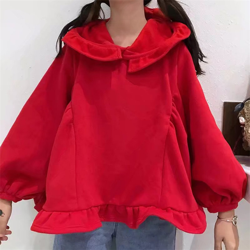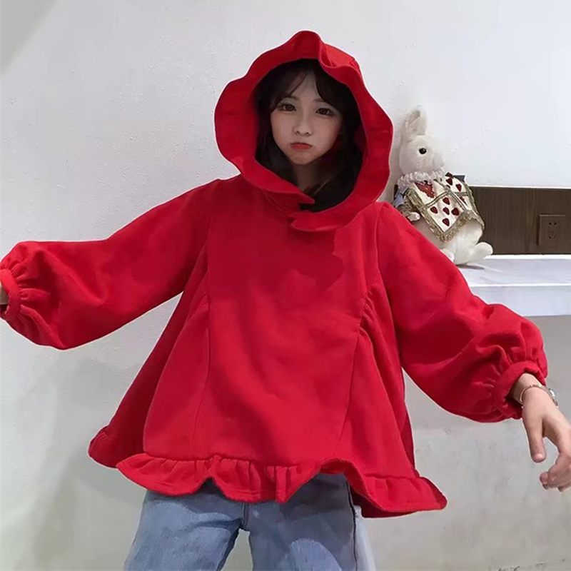 / 可愛少女泡泡長袖加絨衛衣秋冬裝2018新款學生甜美荷葉邊連帽外套