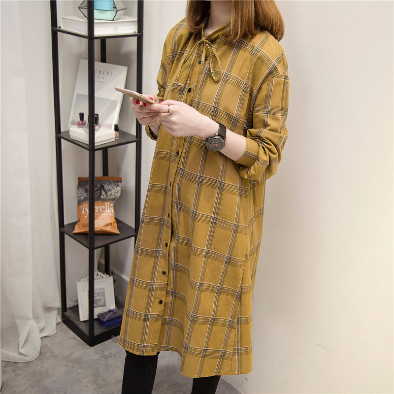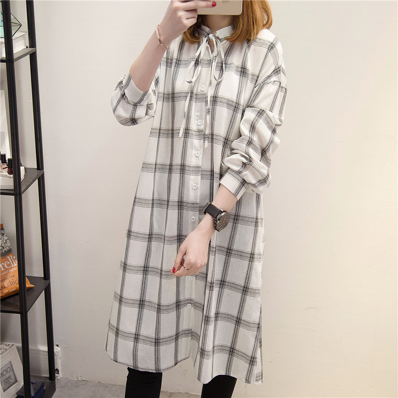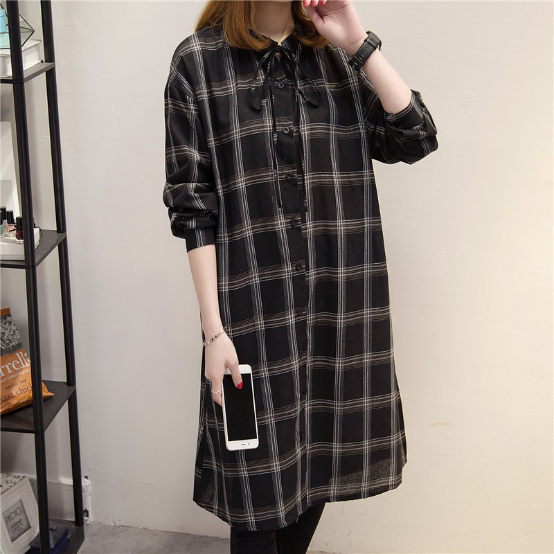 / 格子襯衣女長袖春裝新款寬松中長款韓版女裝學生百搭上衣外套