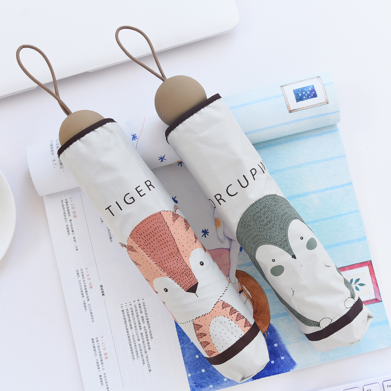 清新可愛黑膠傘創意卡通動物折疊晴雨兩用雨傘輕巧便攜迷你遮陽傘