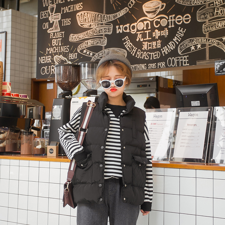 / 秋冬女裝韓版學院風寬松面包服棉衣學生加厚保暖無袖馬甲棉服外套