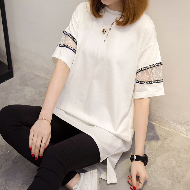 / 短袖上衣女夏新款白色蕾絲鏤空t恤女半袖體恤衫韓版學生百搭