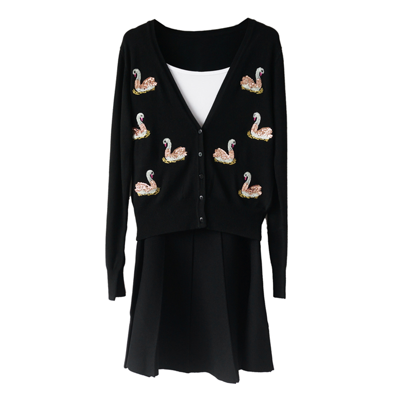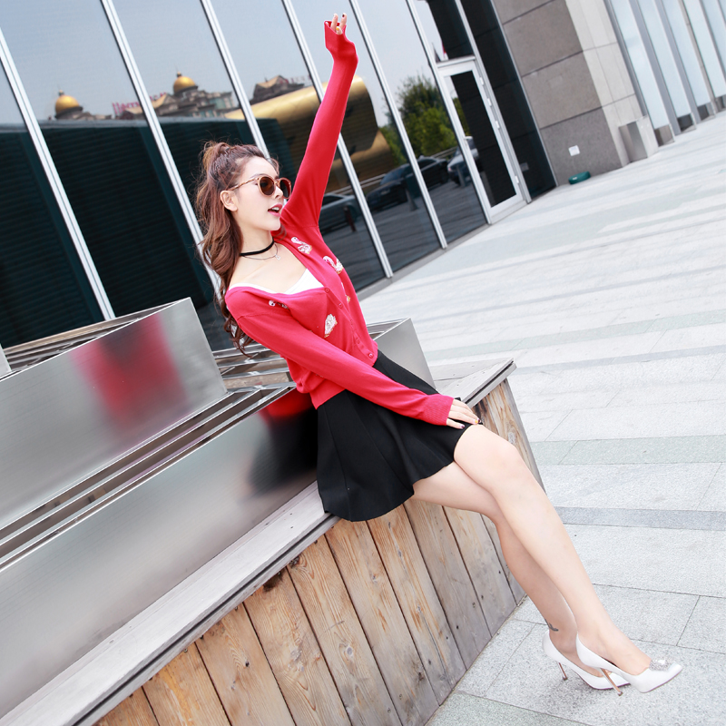 2018秋季新款名媛氣質休閑時尚套裝吊帶衫V領外套短裙三件套女裝