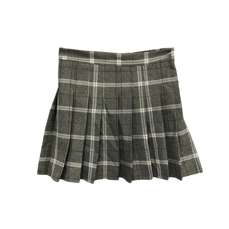 復古學院風時尚高腰A字裙韓版顯瘦百褶裙短裙顯瘦百搭格子半身裙