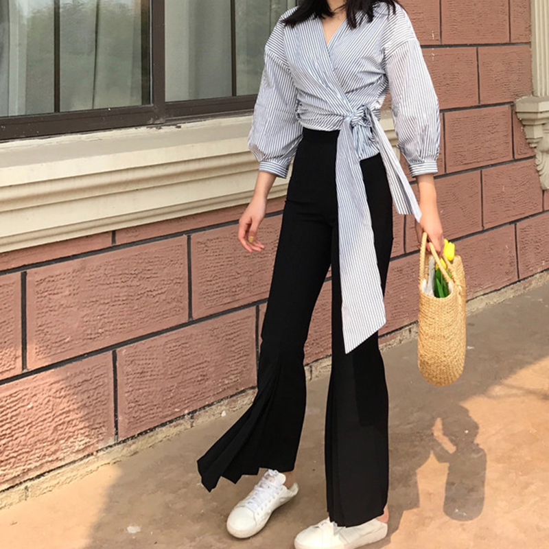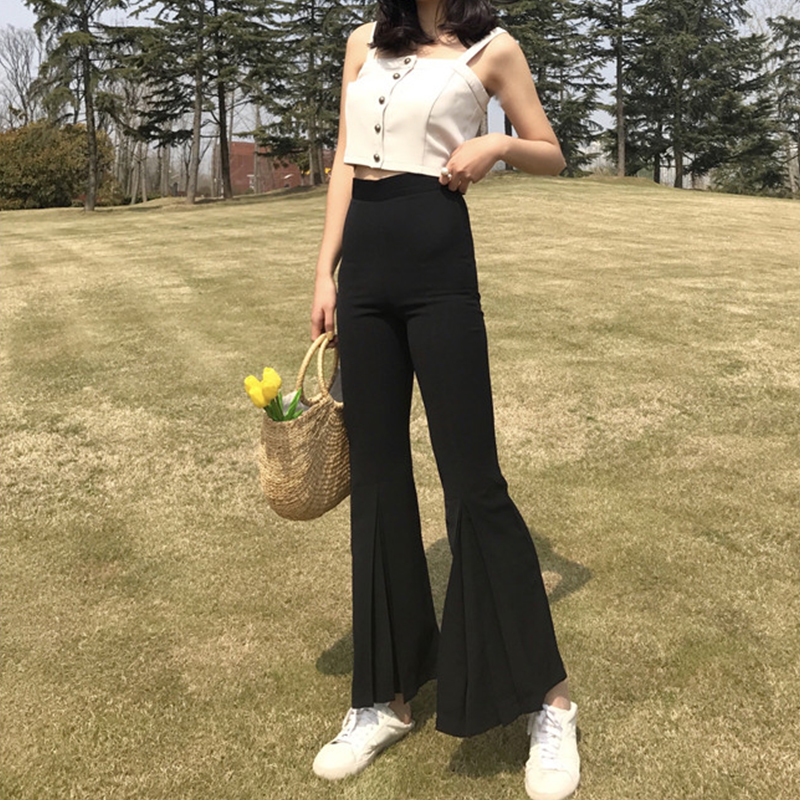 / 2018春夏新款復古高腰修身顯瘦不規則微喇叭褲女時尚韓版九分褲潮